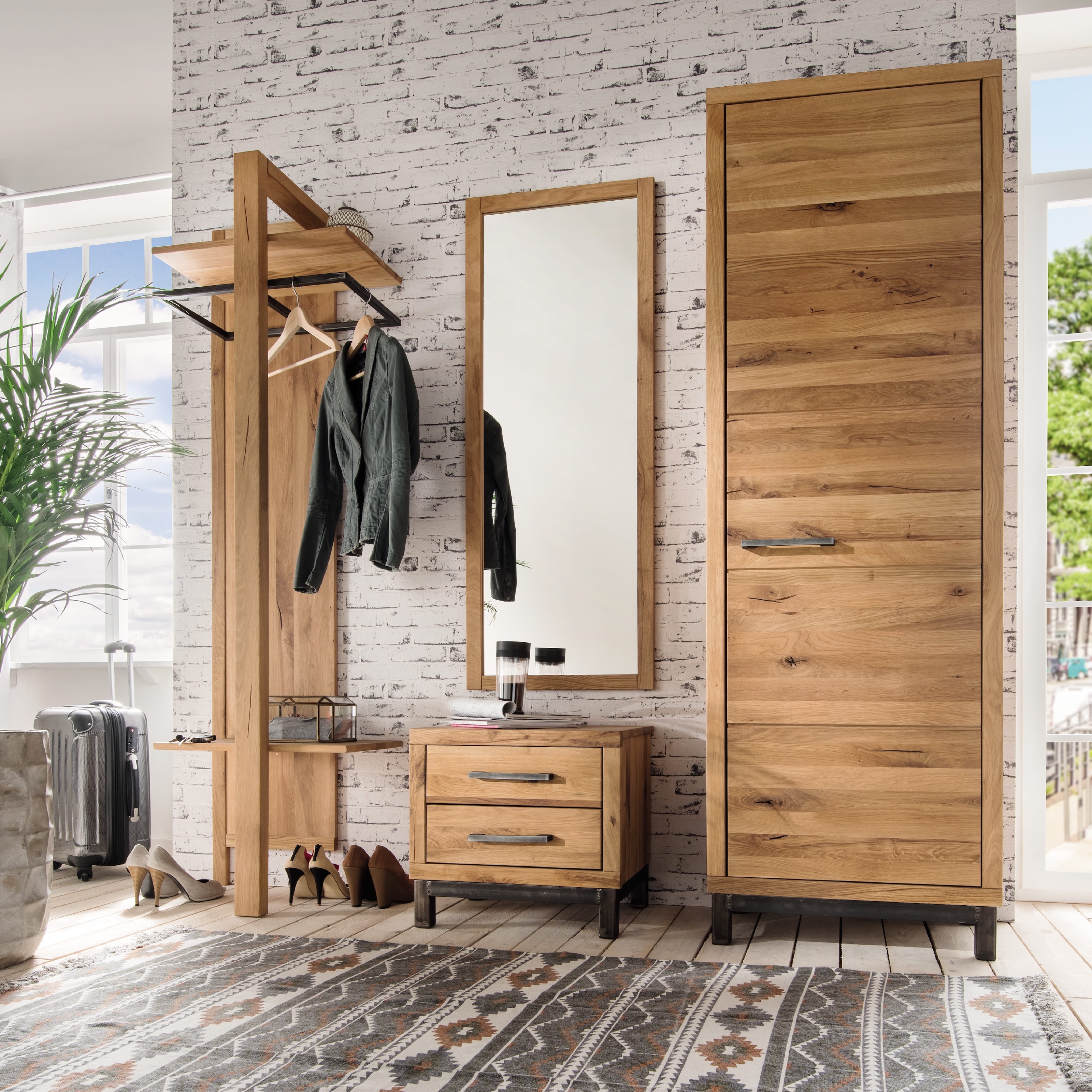 Suchst Du nach einer Garderobe, die Funktionalität und Stil vereint? Die Garderobe Brest aus Massivholz von Wohnglücklich, erhältlich bei SKANMØBLER, ist die perfekte Wahl. Unsere Garderobe Brest bietet eine elegante Lösung für Deinen Flur und besticht durch hochwertige Materialien wie Kernbuche und Wildeiche. Entdecke das skandinavische Design, das Deinem Zuhause einen Hauch von Natürlichkeit und Wärme verleiht. Profitiere von der Qualität und dem durchdachten Design der Garderobe Brest. Bestelle jetzt Deine neue Garderobe bei SKANMØBLER! 🏡